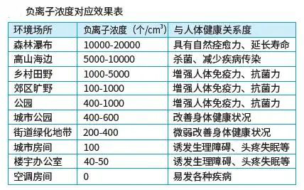 在自然界中當(dāng)負(fù)氧離子數(shù)在10000個(gè)/cm3以上時(shí),人會感到神清氣爽、舒適愜意。所以負(fù)氧離子也被稱為“空氣維生素”,甚至有人稱它為“長壽素”。