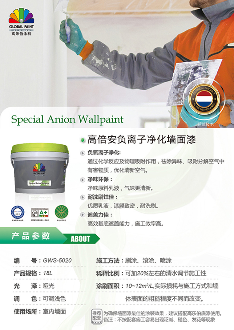 荷蘭高樂伯涂料秉承歐洲企業(yè)“專業(yè)、環(huán)保”的理念,在荷蘭技術(shù)支持下,開發(fā)具負(fù)離子功能的墻面漆,通過物理吸附、凈化作用,能減少裝修污染帶來的危害,為家人打造更健康宜居的環(huán)境。