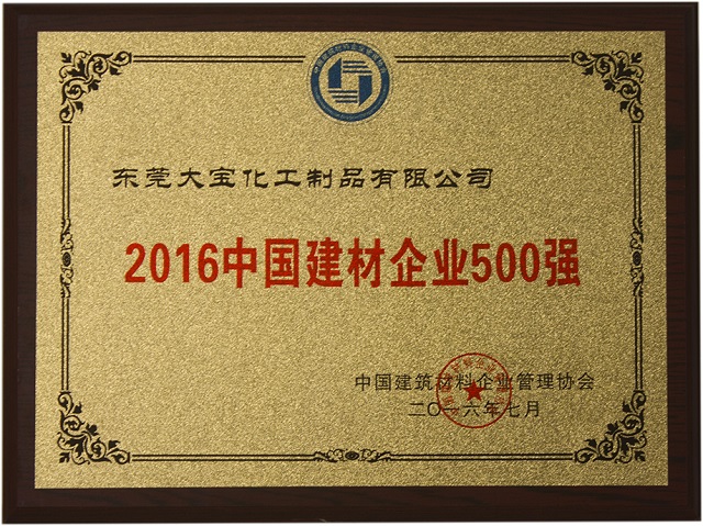 東莞大寶化工制品有限公司在中國建筑企業(yè)管理協(xié)會、中央國情調(diào)查委員會及焦點中國網(wǎng)的聯(lián)合評測中,榮獲“2016年中國建筑企業(yè)500強”榮譽獎項。