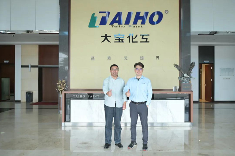 周志鴻與中外涂料網主編語飛來合影。